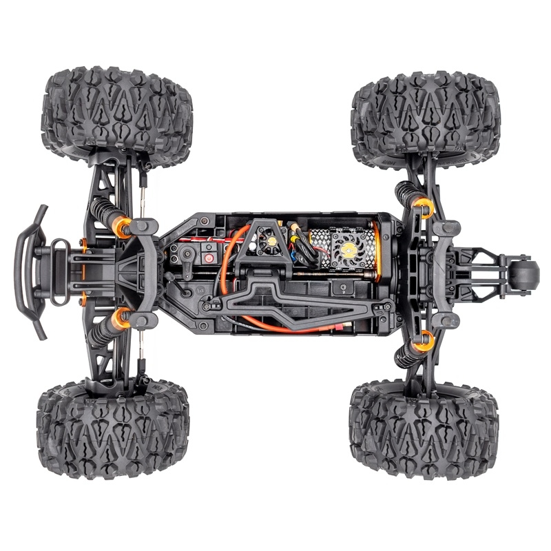 Plastové, kompozitní šasi s lemy pro boční ochranu umožňuje modelu odolat všem podmínkám. Extrémně výkonný střídavý pohonný systém Konect od HobbyWing, který zahrnuje 80A regulátor otáček a motor 3660-2200kV. Dálkové ovládání Konect 2,4 GHz umožňuje nastavení všech důležitých parametrů. Navíc máte přístup k celé řadě volitelných tuningových dílů.