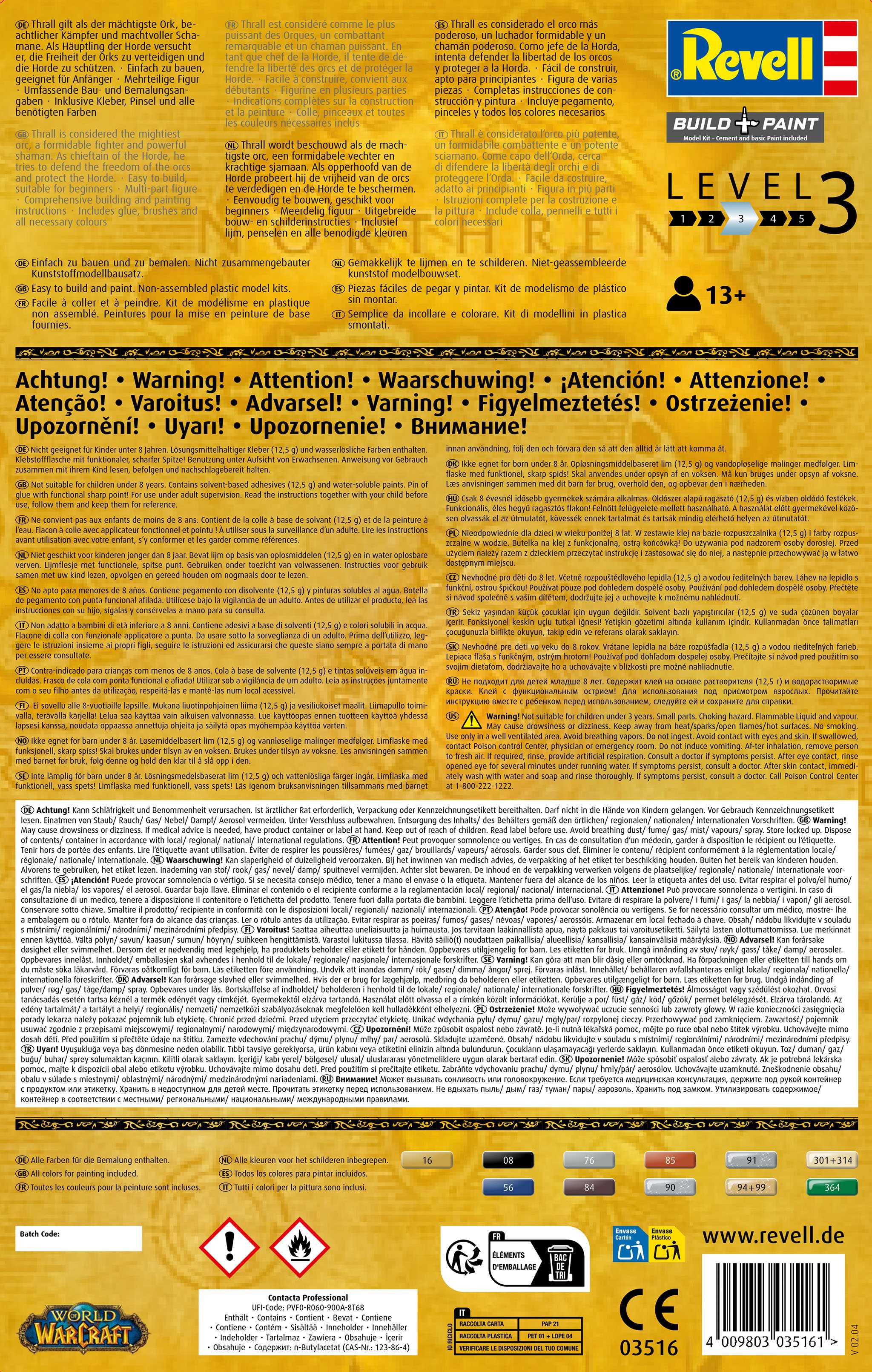 S působivou výškou 185 mm a délkou 98 mm bude Thrall ozdobou každé sbírky. Realistický design a vysoce kvalitní materiály zajišťují, že hotový model nejen krásně vypadá, ale je také odolný. Ať už jako dekorace na poličku, dárek pro fanouška WoW nebo nová výzva pro vás samotné, tato sada vám přinese radost a hrdost z modelování.