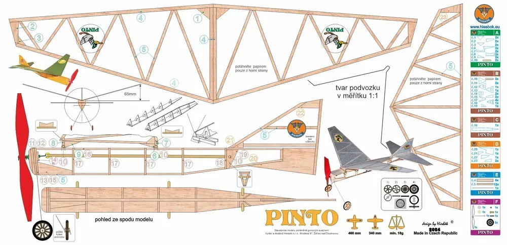 Pinto je klasická stavebnice modelu poháněného gumovým svazkem. Je určena mírně pokročilým modelářům. Vychází z původní stavebnice vyráběné firmou Igra od roku cca 1975.