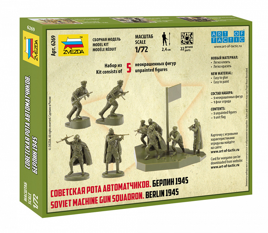 Poslat dotazSada plastikových figurek zachycující příslušníky Rudé armády při dobývání Berlína v roce 1945. Set obsahuje 5 nenabarvených figurek sovětských vojáků v různých pozicích, a to včetně výzbroje a výstroje.