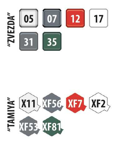 Potřebné barvy Tamiya: