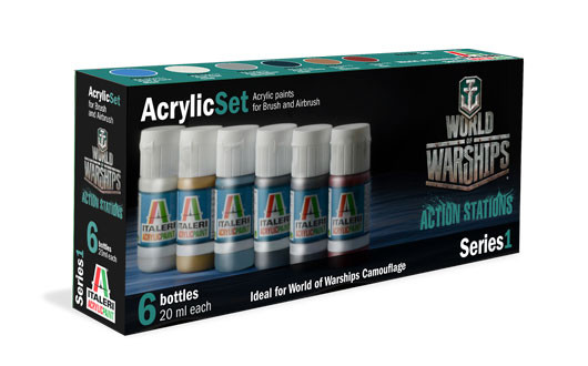 Sada akrylových barev 447AP - tento balíček obsahuje všechny odstíny nezbytné pro realizaci kamufláže lodí ze série World of Warships.