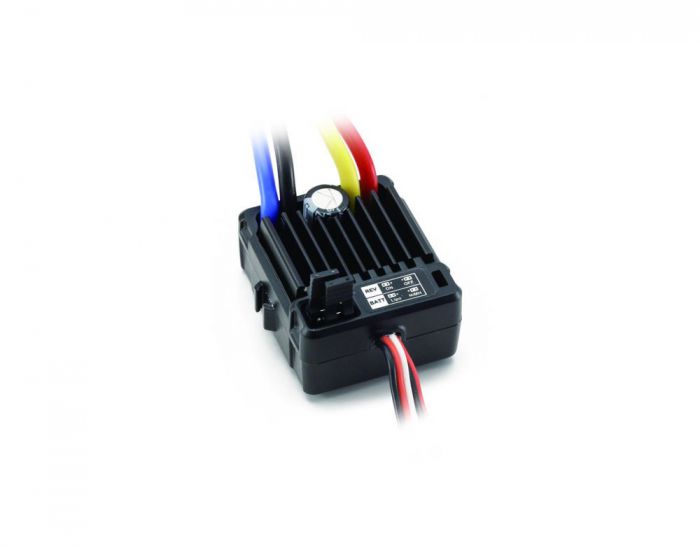 V modelu je nainstalován stejnosměrný regulátor otáček Vortex WP Brush 45A ESC