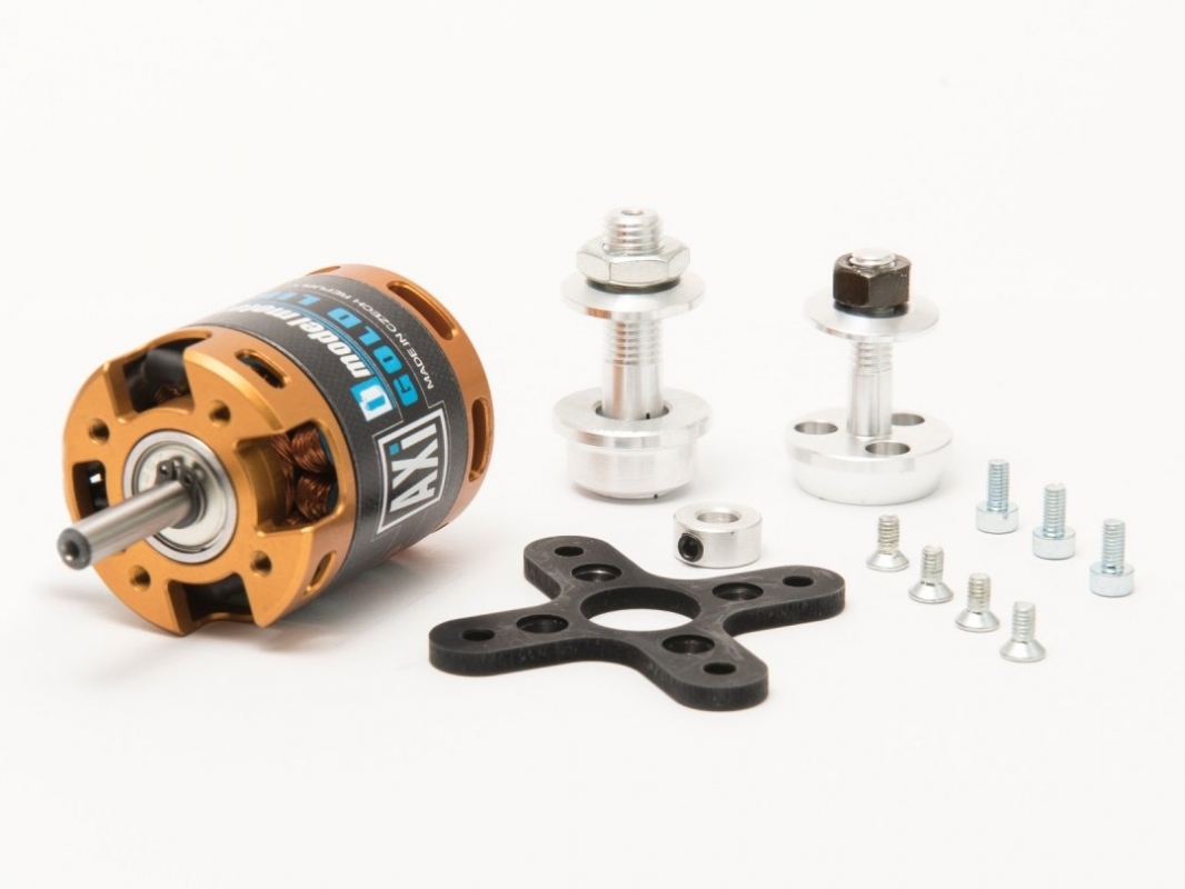 Combo set střídavého elektromotoru AXI V2 a regulátoru otáček Foxy G2 pro modely typu trenér do hmotnosti 2400 g, větroňů do hmotnosti 2400 g, akrobatů do hmotnosti 2000 g a 3D akrobatů do hmotnosti 1500 g. Napájení Lixx 3–5S, hřídel o průměru 5 mm. Dodáváno včetně kleštinového unašeče pro pevnou vrtuli a sady pro zadní montáž.