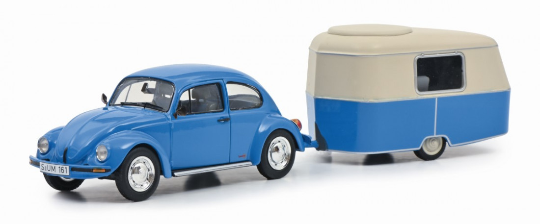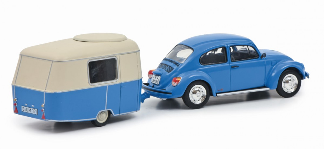 1:43 VW Beetle 1600i w/ Eriba Puck Trailer, 1970 (Blue & Cream White)