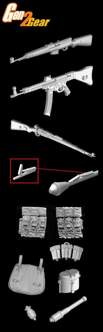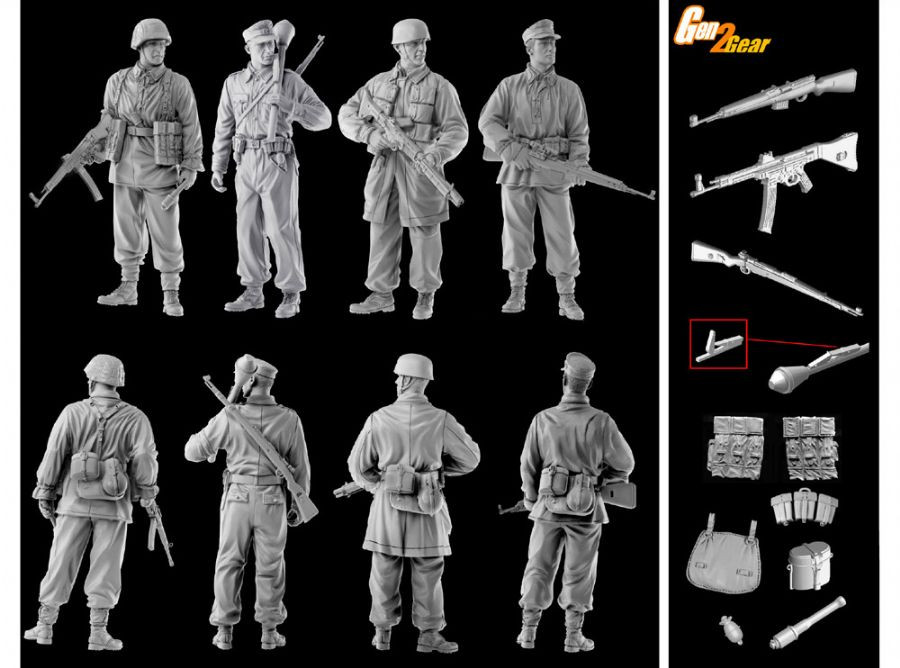 Poslat dotazStavebnice obsahující plastikové výlisky pro stavbu 4 figurek příslušníků německé pěchoty z období závěrečných fází 2. světové války. Figurky zaujímají různé autentické pozice. Součástí stavebnice je i výzbroj a výstroj.