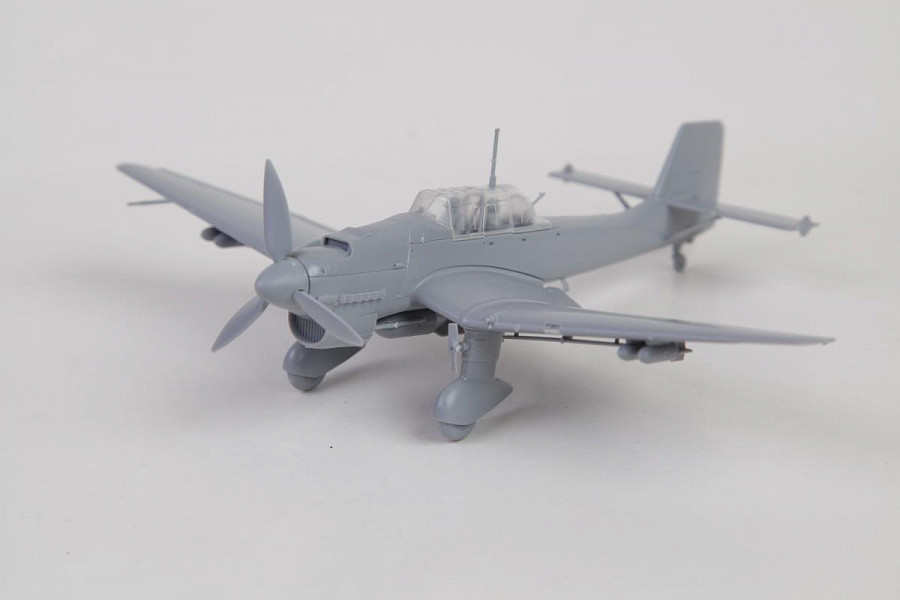 Poslat dotazJunkers Ju 87 Stuka sloužil během druhé světové války jako střemhlavý bombardovací letoun nacistické Luftwaffe. Model Ju 87 B-1 se osvědčil především na počátku války v Polsku, Holandsku, Belgii i Francii. V bitvě o Británii však velmi zklamal. V roce 1941 nastupuje model Ju 87 D-1 s řadou vylepšení, především aerodynamiky a pancéřování. Vzhledem k síle nepřátelských stíhaček byly postupně Stuky nasazovány jako bitevní letouny. Existovala i protitanková verze Ju 87 G, která byla vyzbrojena dvěma kanóny BK 37 ráže 37 mm. V prosinci 1939 začala výroba verze B-2. Ta se lišila větším vodním chladičem a dřevěnou vrtulí, která nahradila vrtuli kovovou a vylepšení se dočkala i radiostanice. Verze B-2 mohla nést až 1000 kg bomb.