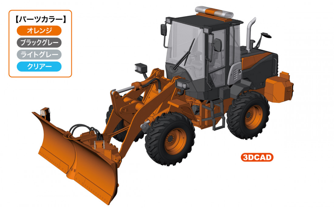 Detailně zpracovaná plastiková stavebnice kolového nakladače Hitachi Wheel Loader ZW100-6. Kit zachycuje stroj se zavěšenou radlicí na odhrnování sněhu. Po dokončení modelu jsou rameno a radlice pohyblivé. Kit obsahuje probarvené plastikové výlisky a realistickou figurku strojníka.