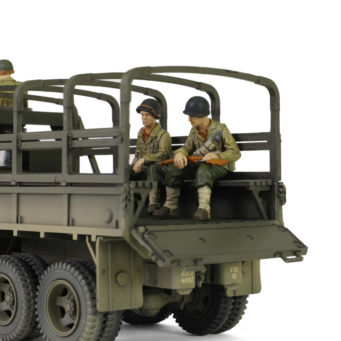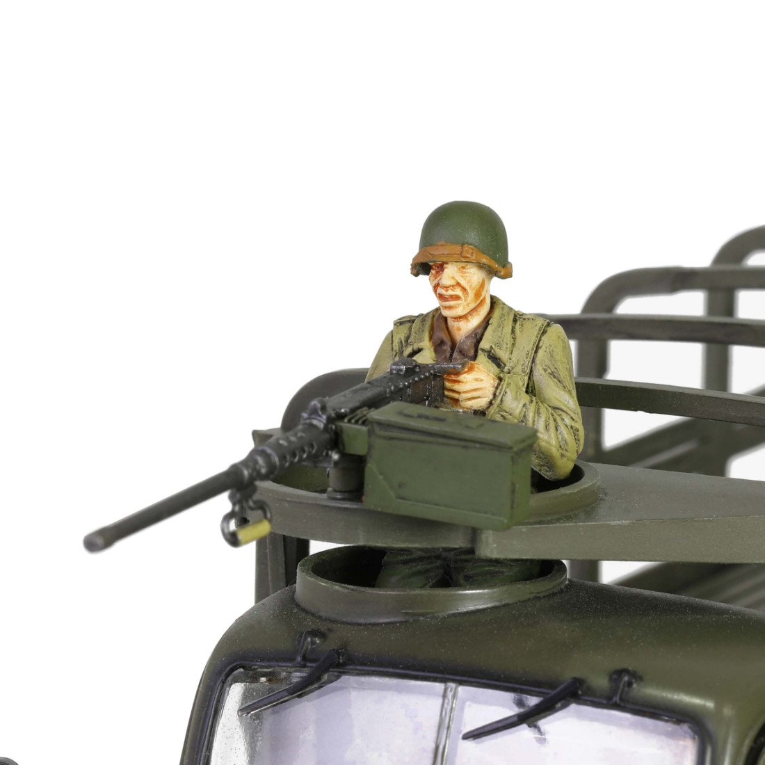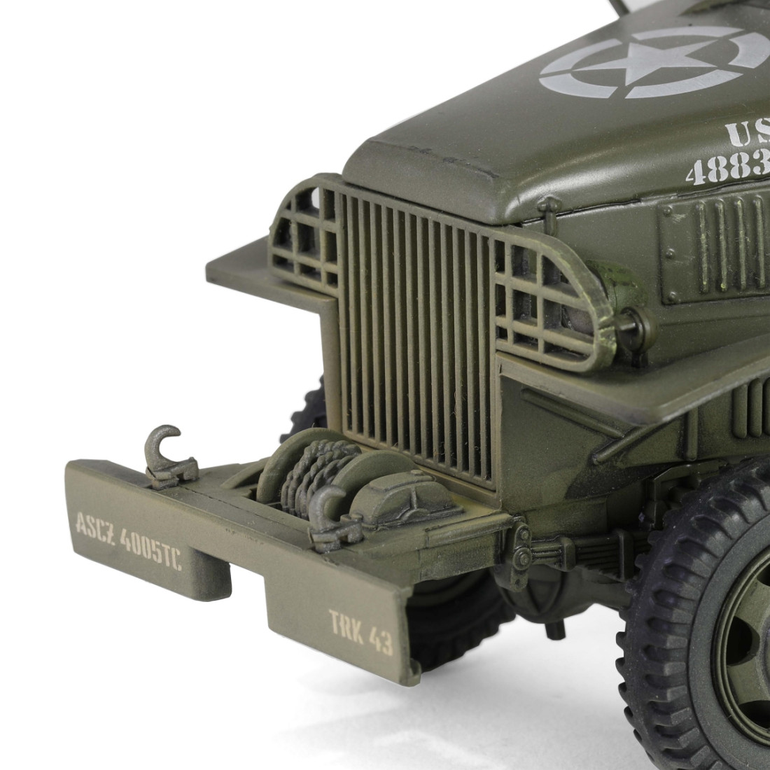 Velmi pěkně zpracovaný kovový model amerického druhoválečného nákladního automobilu GMC CCKW. Model nabízí řadu propracovaných detailů, a to včetně sklopného zadního čela korby nebo funkčního natáčení kol přední nápravy. Dodáváno s autentickým podstavcem, příslušenstvím a čtyřmi realistickými figurkami.