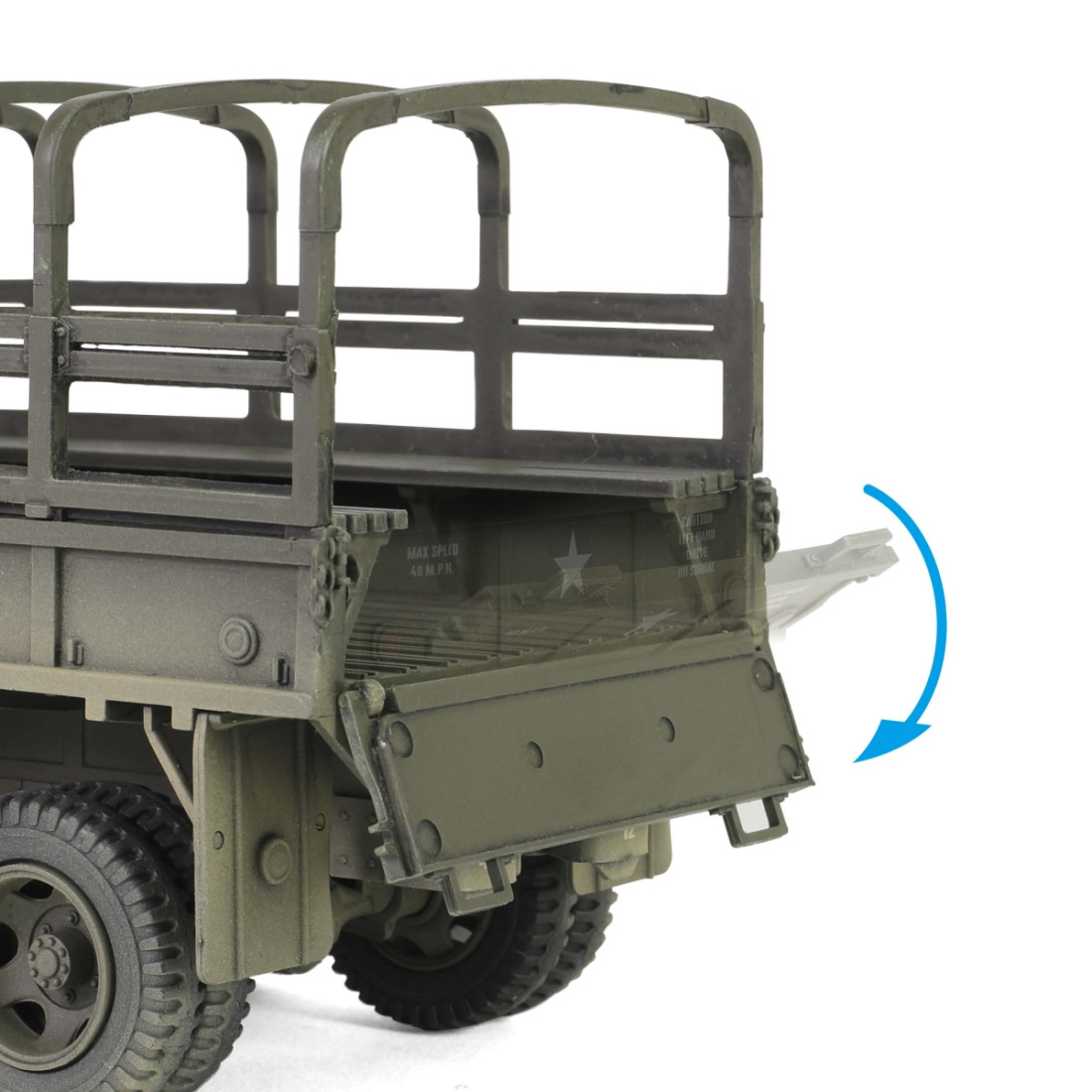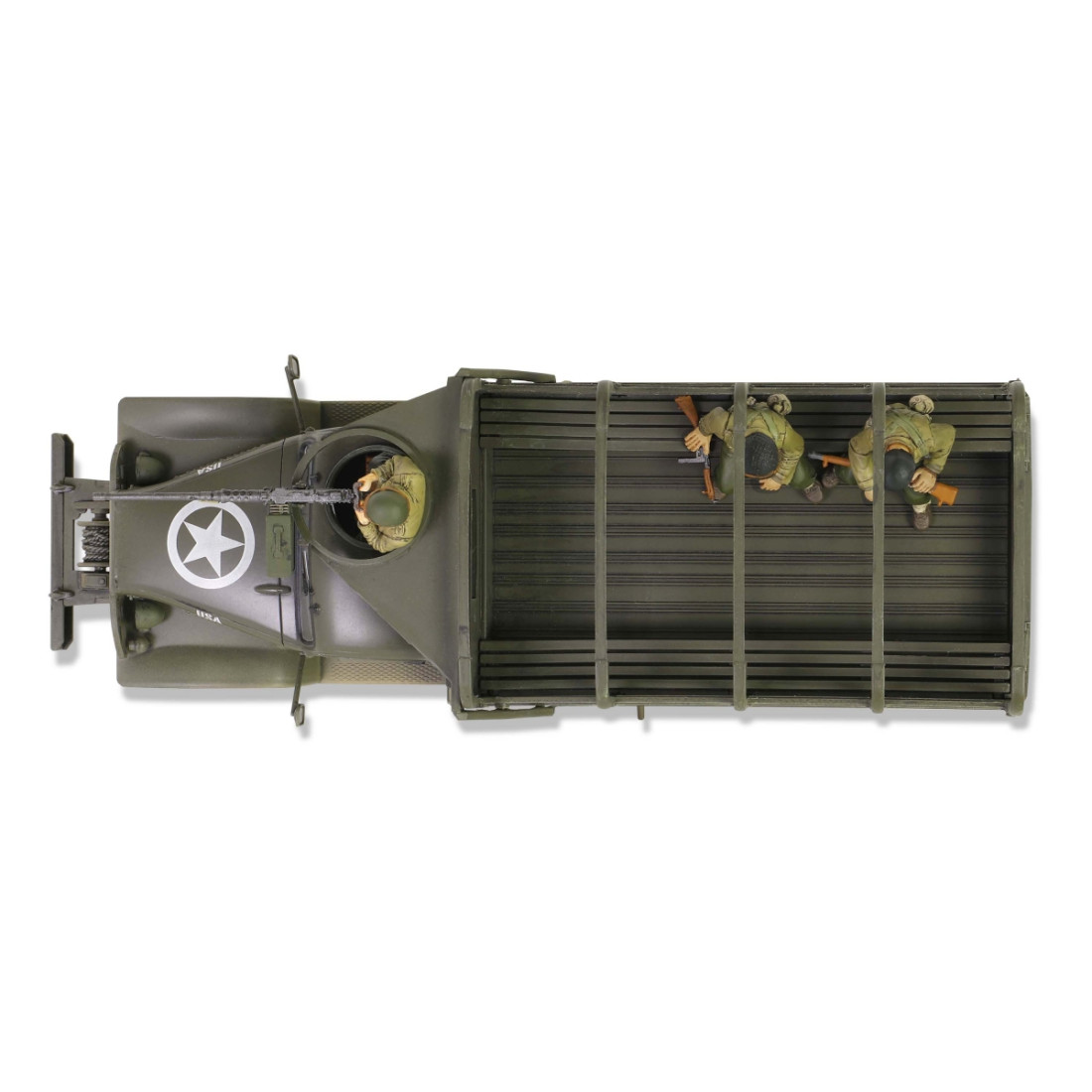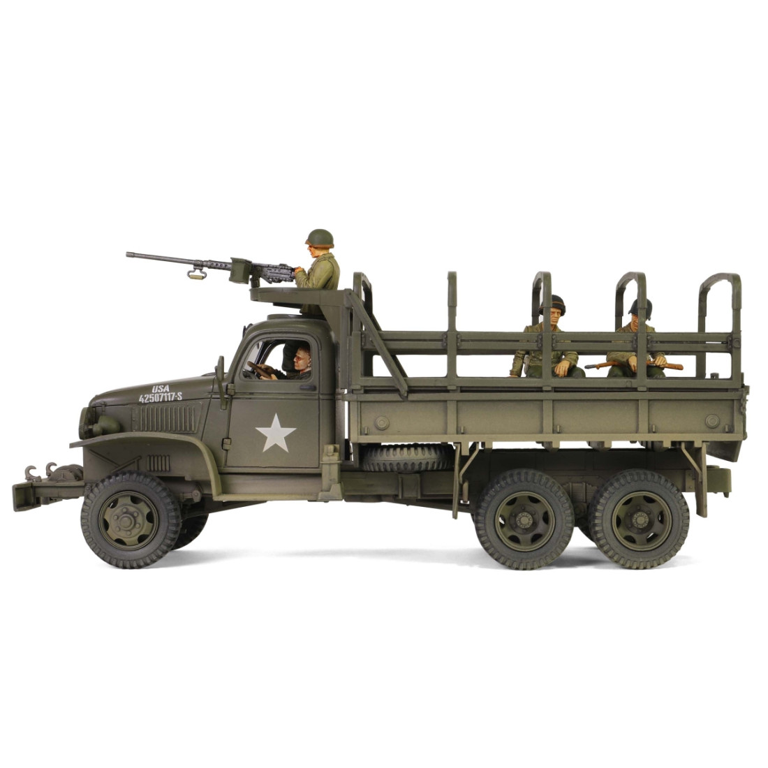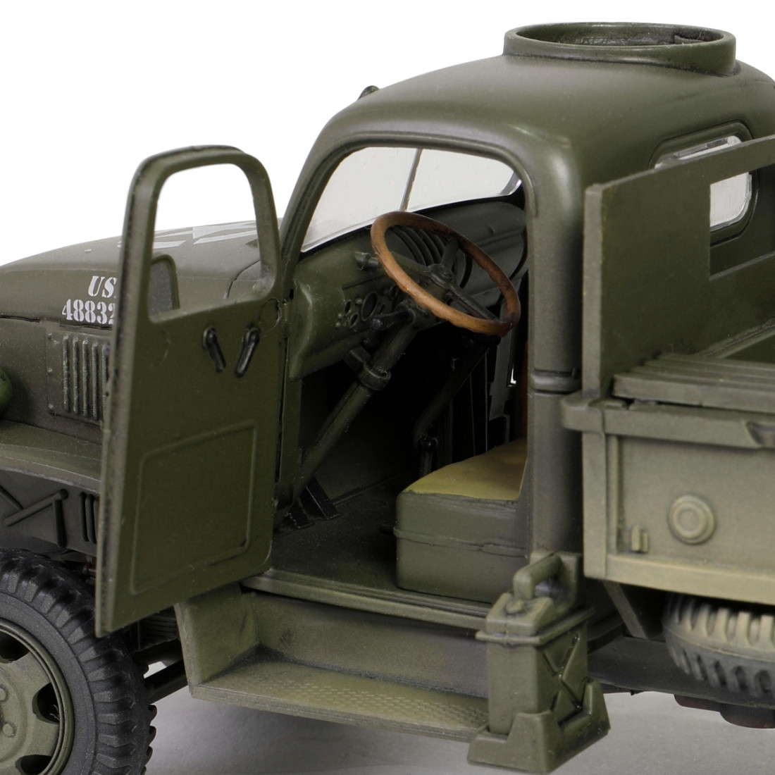 Velmi pěkně zpracovaný kovový model amerického druhoválečného nákladního automobilu GMC CCKW. Model nabízí řadu propracovaných detailů, a to včetně sklopného zadního čela korby nebo funkčního natáčení kol přední nápravy. Dodáváno s autentickým podstavcem, příslušenstvím a čtyřmi realistickými figurkami.