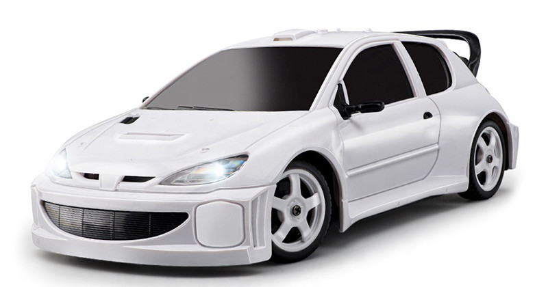 Kompaktní RC model driftovacího auta v měřítku 1:28 s pohonem všech kol 4WD a výkonným stejnosměrným motorem. Model je dodáván včetně volantového ovladače, pohonného Li-Ion akumulátoru 3,7 V o kapacitě 500 mAh a USB nabíjecího kabelu.