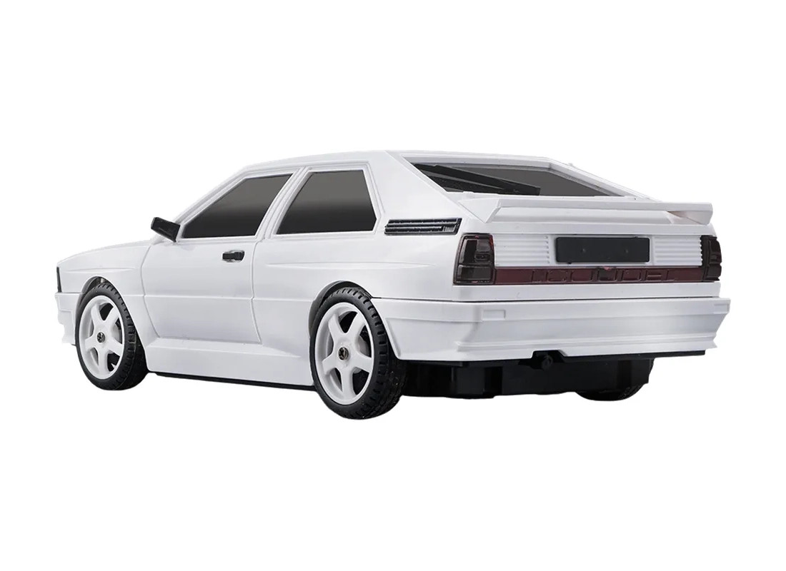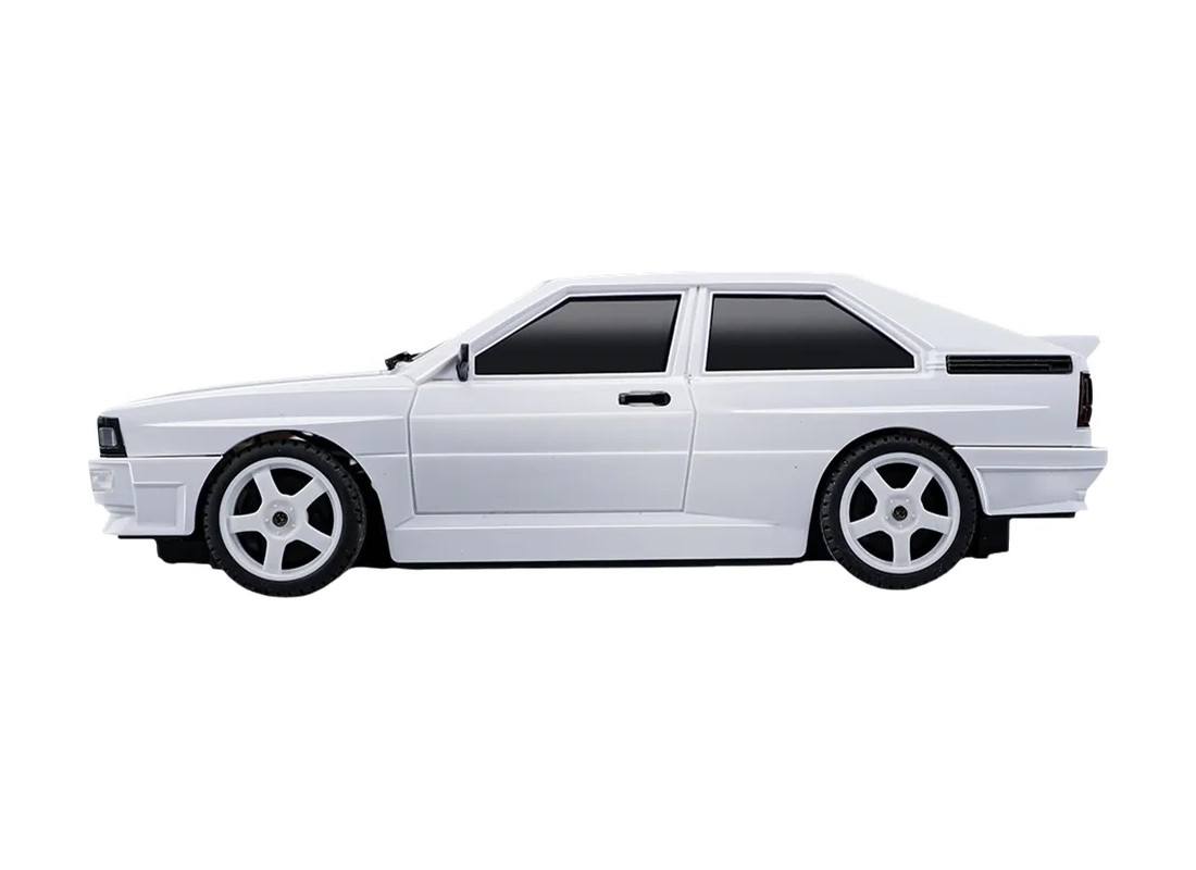 Kompaktní RC model driftovacího auta v měřítku 1:28 s pohonem všech kol 4WD a výkonným stejnosměrným motorem. Model je dodáván včetně volantového ovladače, pohonného Li-Ion akumulátoru 3,7 V o kapacitě 500 mAh a USB nabíjecího kabelu.
