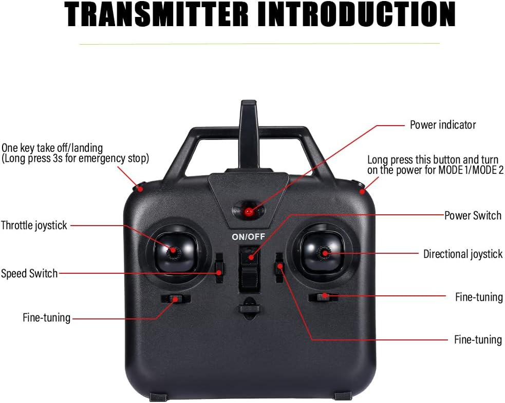 Model napájí modulární lithiový akumulátor 3,7 V s kapacitou 300 mAh poskytuje dostatek energie na cca 15 minut letu. Akumulátor se nabíjí prostřednictvím přiloženého USB nabíjecího kabelu, přičemž nabíjení trvá přibližně 75 minut.
