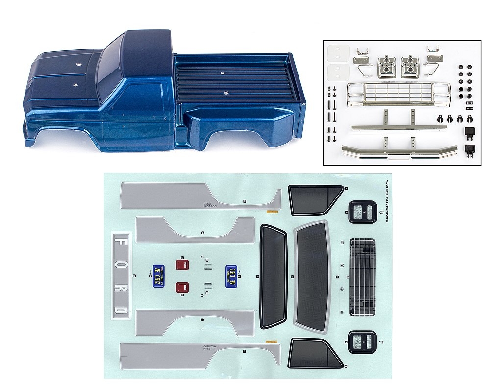 CR12 modrá lexanová karoserie včetně nálepek a příslušenství.