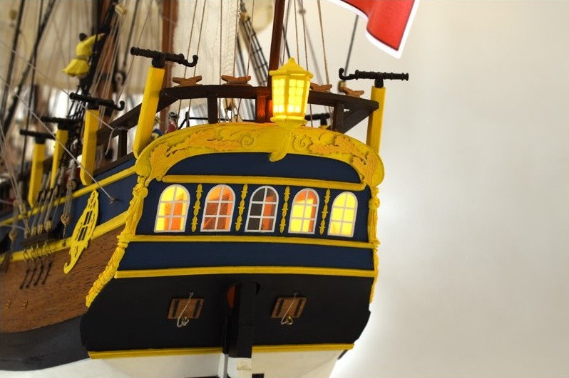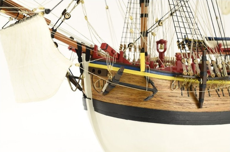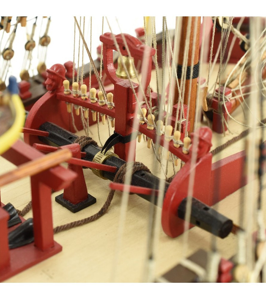 Konstrukce modelu využívá falešného kýlu a žeber, podobně jako je tomu u skutečných lodí. Trup se staví klasickou technologií plaňkováním kostry, v tomto případě částečně ve dvou vrstvách. Stavebnice obsahuje přesné laserem vyřezávané díly ze dřeva a překližky, dýhové pásky na oplaňkování trupu, dále pak doplňky z mosazi (např. hlavně děl, kování atd.), některé součásti z litého kovu, ušité plachty s autentickou strukturou, nitě, hřebíčky a veškerý další stavební materiál.