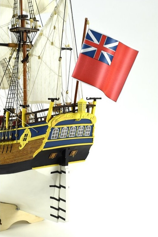 Perfekně zpracovaná dřevěná stavebnice modelu HMS Endeavour v měřítku 1:65 z roku 1768 od renomovaného španělského výrobce Artesania Latina.