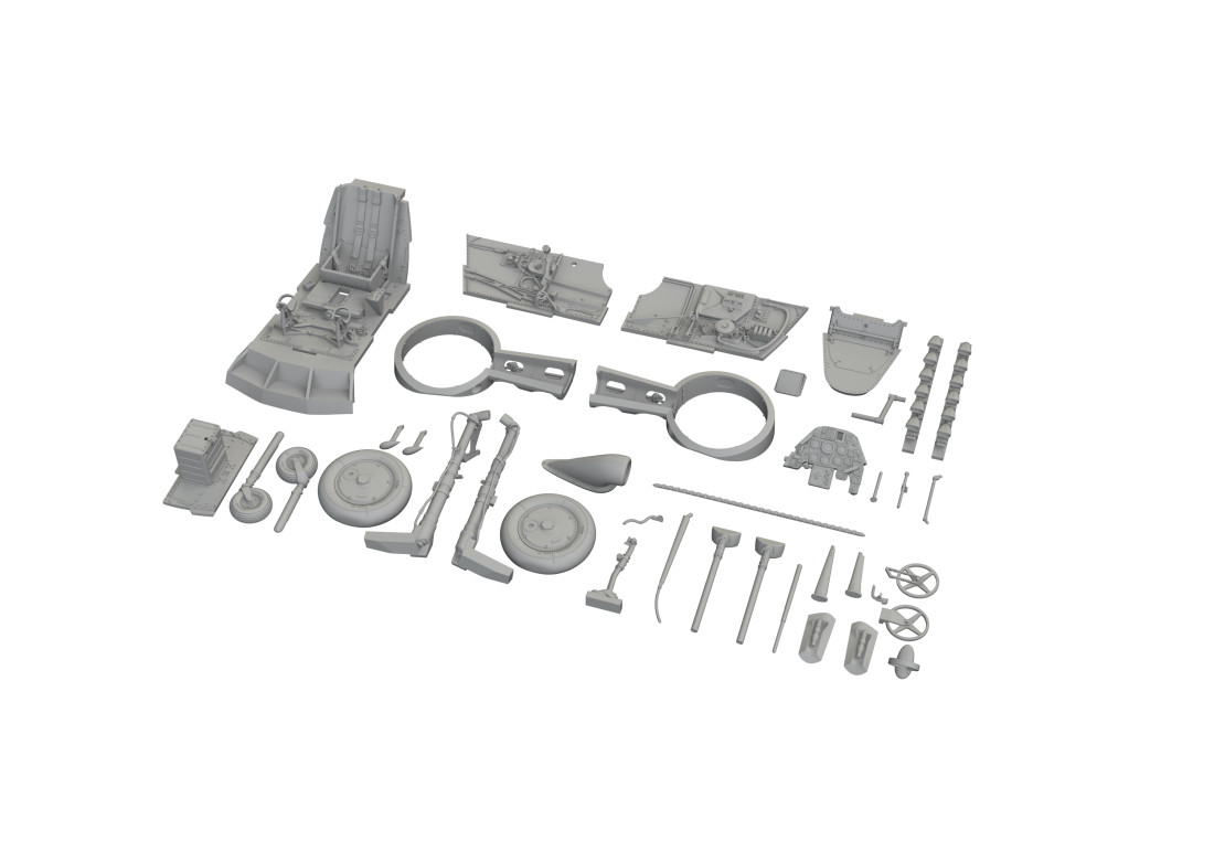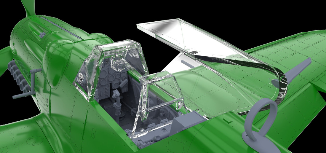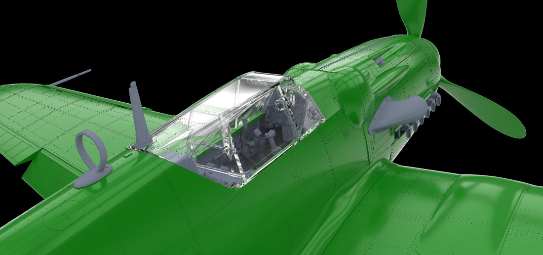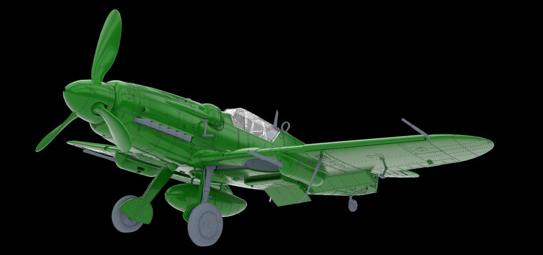 Plastiková stavebnice československého jednomotorového stíhacího letounu Avia S-199 se starším odklopným překrytem kokpitu typu ERLA. Edice HYBRiD v měřítku 1:48.
