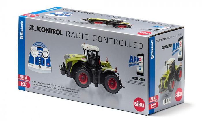 Dálkově ovládaný kloubový traktor Claas Xerrion 5000 TRAC VC od firmy SIKU zpracovaný v měřítku 1:32. Traktor se ovládá prostřednictvím přiloženého Buetooth vysílače. Lze jej však ovládat i pomocí vašeho smartphonu či tabletu, který musí být vybaven portem Bluetooth. Podporovány jsou operační systémy Android a iOS.