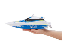 Zločinci zde nemají šanci! S tímto rychlým a obratným policejním člunem ovládneš vody. Dva elektromotory a integrovaný Li-Ion akumulátor poskytují potřebný výkon a dlouhou dobu jízdy. Díky přiloženému USB nabíjecímu kabelu je člun vždy znovu připraven k akci!