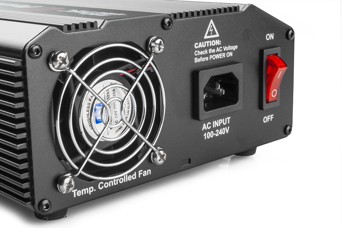 Spínaný stabilizovaný síťový zdroj 50A s LCD displejem a nastavitelným výstupním napětím 15-30V/0-50A. Max. výkon 1200W. Čtyřnásobné výstupní svorky (3x s vypínačem), dvojitá napájecí USB zásuvka max. 5V/2A. Hmotnost 3,08kg.