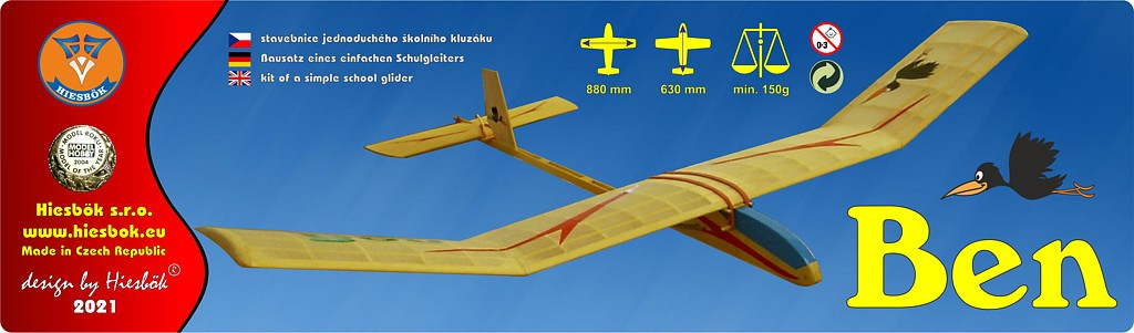 Official model of category A3. The Ben model fully complies with the rules of the competition category A3 and is an ideal choice for first racing attempts. Model of the year 2004 At the prestigious Model-Hobby Prague fair in 2004 it won the award