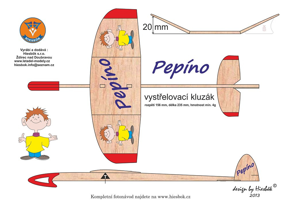 Send a questionPepíno model – a simple launcher with great potential. The Pepíno model is an ideal choice for beginning modelers. Its construction is simple, yet it allows for great flight characteristics – especially for those who dare to sharpen the wing profile.