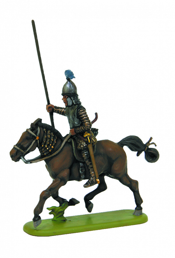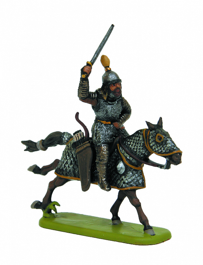 A set of plastic figures of Cataphracts, members of a heavily armed special cavalry unit from the Byzantine Empire. The set contains 20 unpainted warriors on horses in various positions in 1:72 scale.