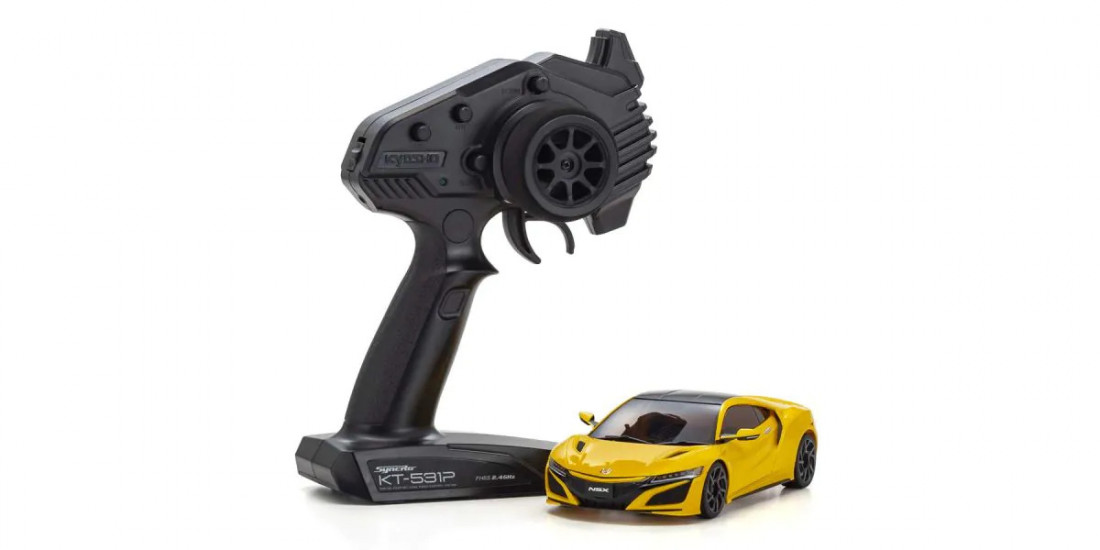Moderní vysílač Syncro KT-531P je vybaven trimy řízení a plynu, podporuje dvojité výchylky a je osazen LED diodami. Volantu je opatřen rukojetí z pěnové hmoty, která zajišťuje jistý úchop, a tím i precizní ovládání modelu. Kromě samotného šasi set obsahuje ve sběratelské kvalitě zpracovanou karoserii. Nový řídící program spolu s nově navrženými obvody základní desky přinášejí lineární reakce na povely z vysílače a jisté chování auta, které může být dále vylepšeno instalací volitelného gyroskopu (není součástí balení). Tento set přináší vše potřebné k ponoření se do úžasného světa rádiem řízených aut!