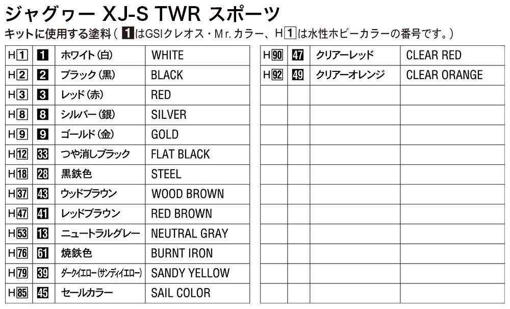 Doporučené barvy GSI Gunze Hobby Color (H):