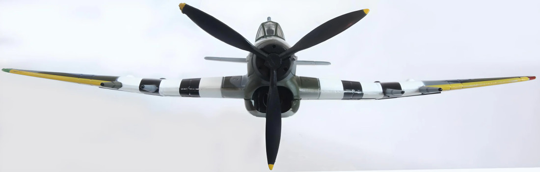 Metal collector's model of the British World War II fighter aircraft Hawker Typhoon Mk.I. The model comes with a stand.