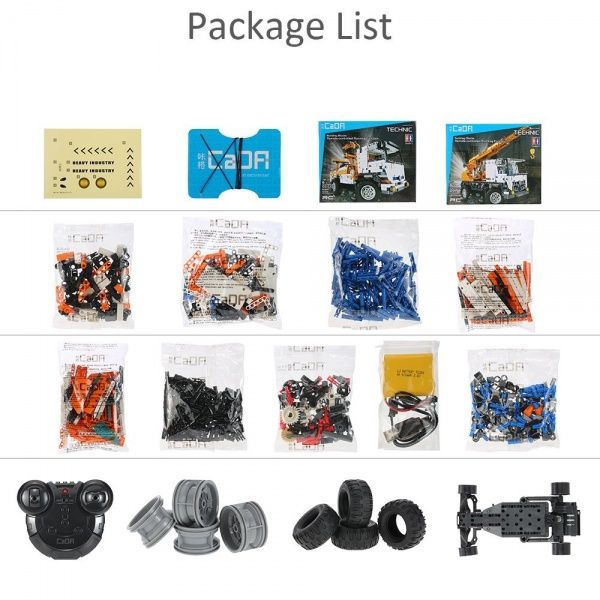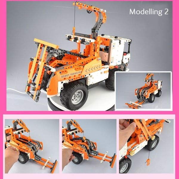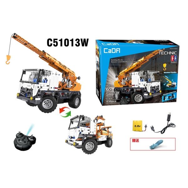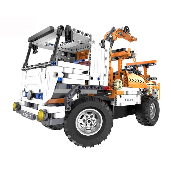Sestavte si autojeřáb, nebo odtahový vůz na dálkové ovládání. Stavebnice z kostek obsahuje celkem 839 dílů. Model je dlouhý 370 mm, ovládání zajišťuje vysílač na frekvenci 2,4 GHz. Maximální rychlost modelu cca 6 km/h. Stavebnice je vhodná pro děti od 6 let.