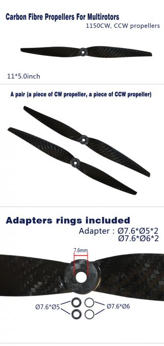 Pár carbonových vrtulí pro multicoptery 11x5 (levotočivá+pravotočivá)