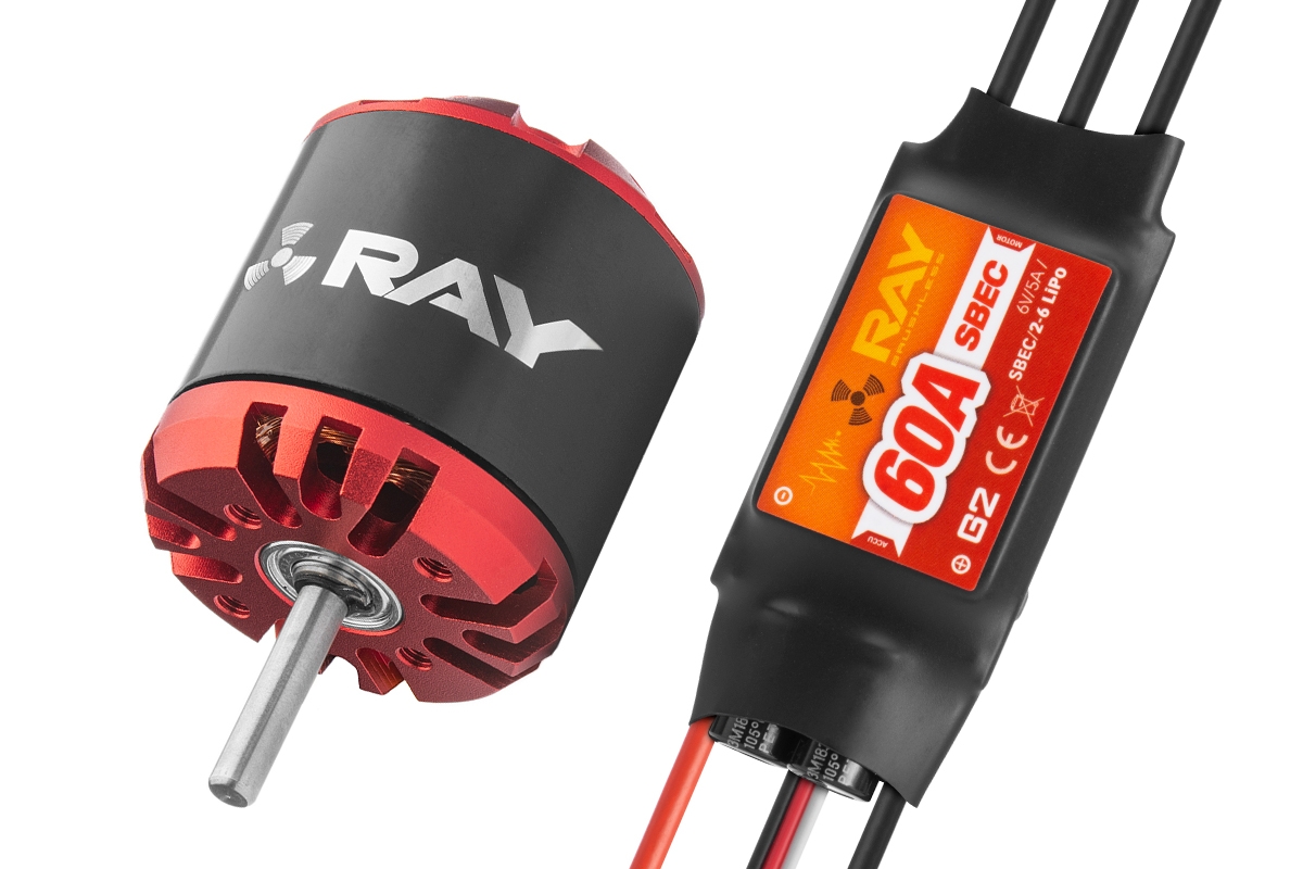 Combo set střídavého elektromotoru s rotačním pláštěm s regulátorem 50 A SBEC pro modely letadel: větroň 2400 g, trenér 2300 g, akro 2000 g, 3D 1500 g, KV1000 ot/min/V, napájení Lixx 3 - 4S, hřídel 5,0 mm.
