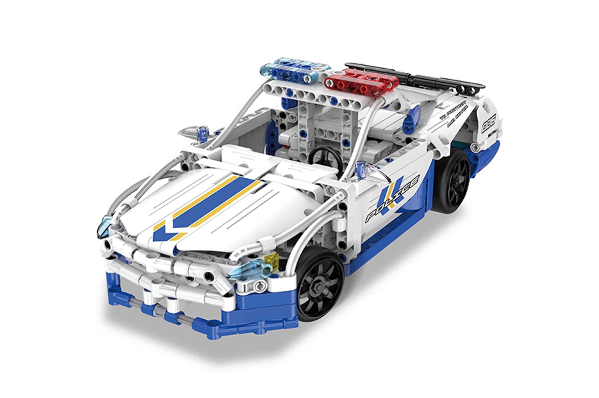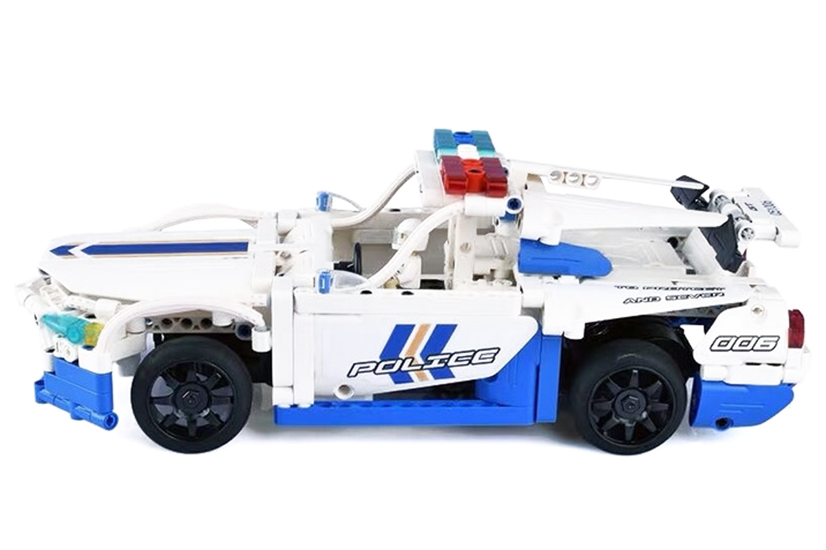 Stavebnice modelu policejního auta na dálkové ovládání. Věrné provedení s otevíratelnými dveřmi, kapotou a kufrem. Jízda dopředu a dozadu, zatáčení doleva a doprava. Pohonný akumulátor pro auto je spolu s nabíječem a vysílačem součástí balení. Stavebnice je kompatibilní s Lego Technic. Dosah dálkového ovladače až 25 m.