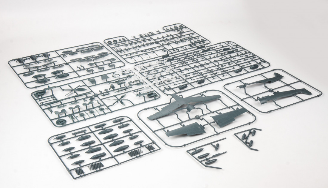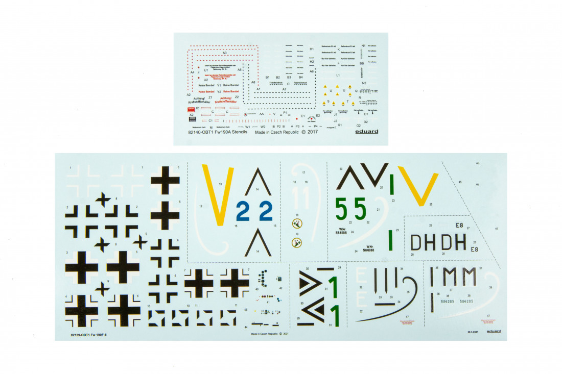 Plastic kit of the German World War II fighter Focke-Wulf Fw 190 F-8, Profipack edition in 1:48 scale. All machines in the kit are armed with four cannons in the wing.
