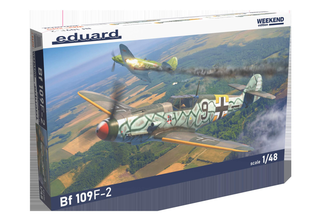 Plastic kit of the German WWII fighter plane Messerschmitt Bf 109 F-2. WEEKEND edition in 1:48 scale.