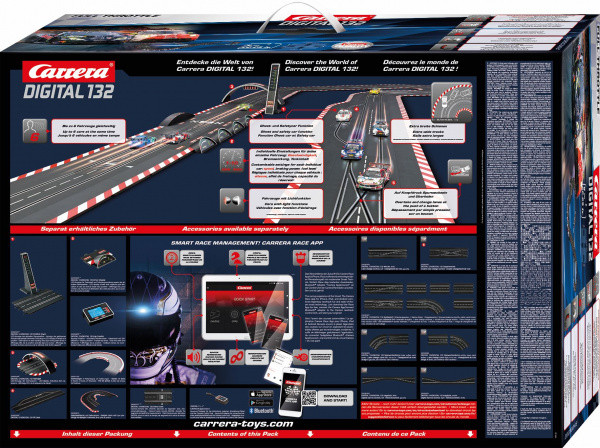 DIGITAL 132 – digitální autodráha umožňující jízdu 6 aut v jedné dráze a jejich vzájemné přejíždění. Carrera znamená ve španělštině závod, a jedno vám můžeme zaručit – jakmile rozbalíte krabici s logem Carrera, rozproudí se vaše závodní krev na nejvyšší otáčky, a je jedno na jakém okruhu a s jakým autem budete zrovna závodit. Tento pocit zažívají tisíce fanoušků již od roku 1963, kdy značka Carrera uvedla na trh svou první závodní autodráhu. Během následujících více než čtyřiceti let se v oblasti autodráh, aut a příslušenství Carrera probojovala až na úplnou špičku. Dnes nabízí produkty nejvyšší kvality, které jsou určené nejen dětem, ale i dospělým, pro něž se staly autodráhy hobby na celý život.