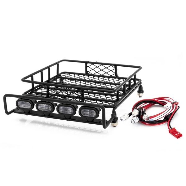 Kovová střešní zahrádka 140×115×40 mm s LED světelnou rampou sestávající ze 4 oválných LED světlometů.