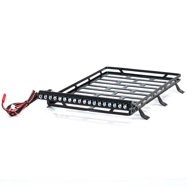 Kovová střešní zahrádka 245×153×45 mm s LED světelnou rampou sestávající z 18 LED diod.