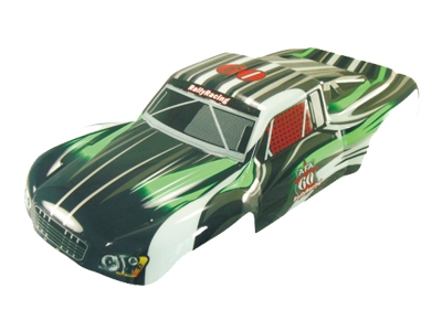 Karoserie Short Course Truck (černo-zelená). Rozměry: cca 86 x 36 cm, rozvor: cca 50 cm. Doporučené tipy pro práci s karoseriemi naleznete ZDE.