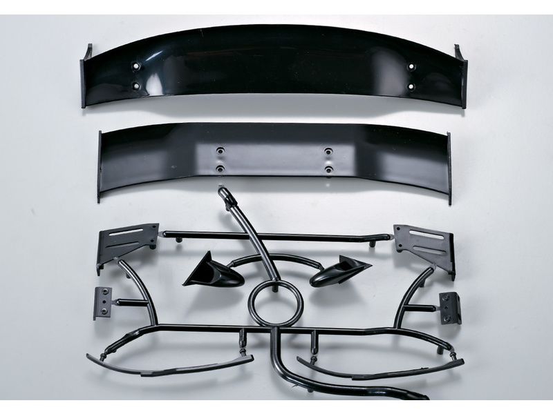 Černá plastová sada zadní křídlo, stěrače a zrcátka od Killerbody pro RC modely aut 1:10.