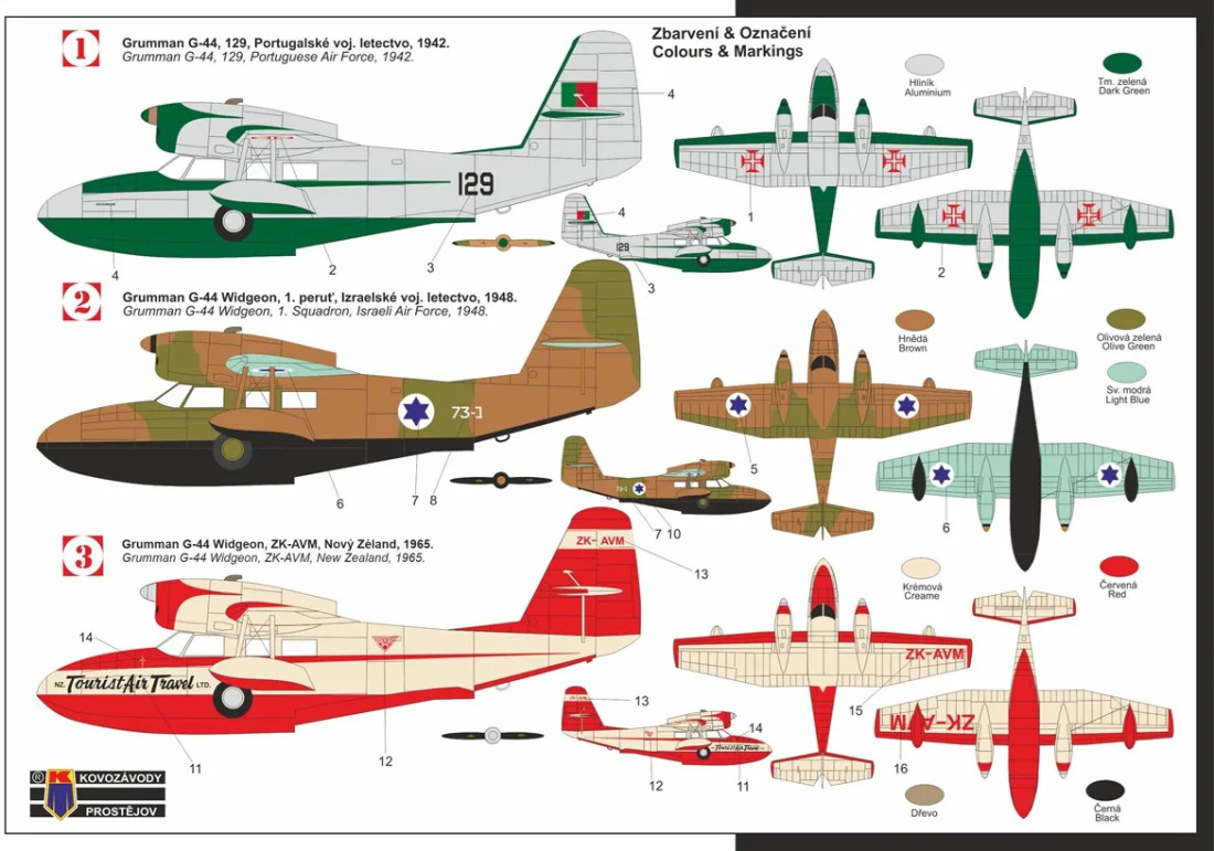 The Widgeon's military service was not limited to the USA, as a number of machines were supplied to the British Royal Navy and other Allied countries under the Lend-Lease agreement. After the war, the aircraft returned to the civilian sector, where, thanks to its reliability and ability to land almost anywhere, it became an icon of transport in remote lake areas and coastal waters. The kit from Kovozávodů Prostějov brings a detailed look at this elegant machine, including cleanly pressed engine nacelles and large cabin glazing.