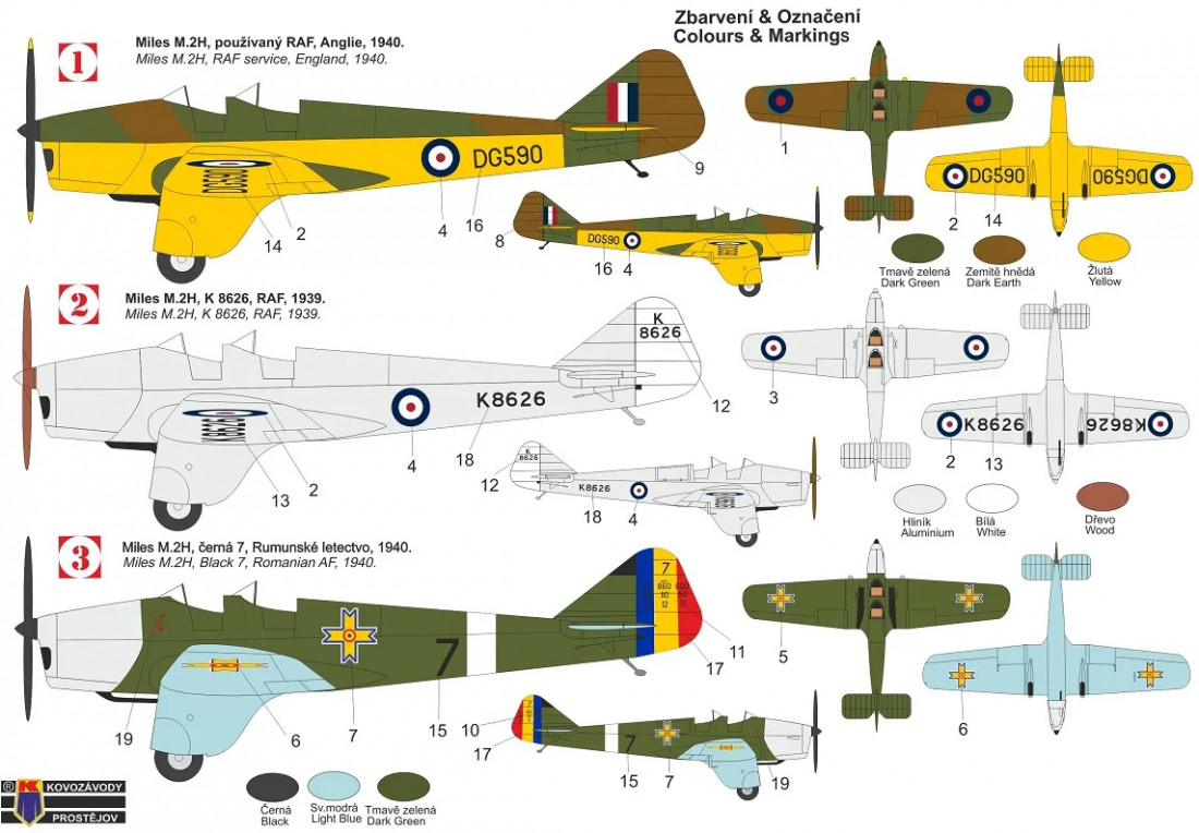 Plastiková stavebnice britského sportovního letounu Miles M.2H Hawk Major.