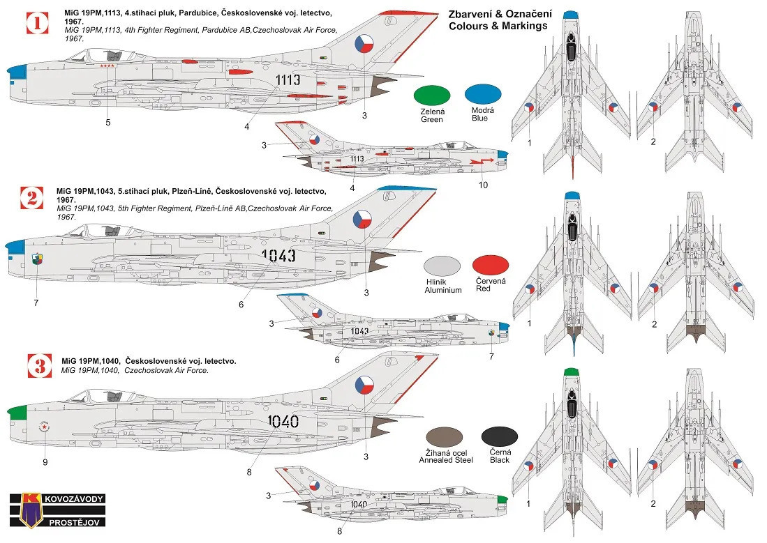 Plastiková stavebnice sovětského proudového stíhacího letounu Mikojan-Gurjevič MiG-19PM.