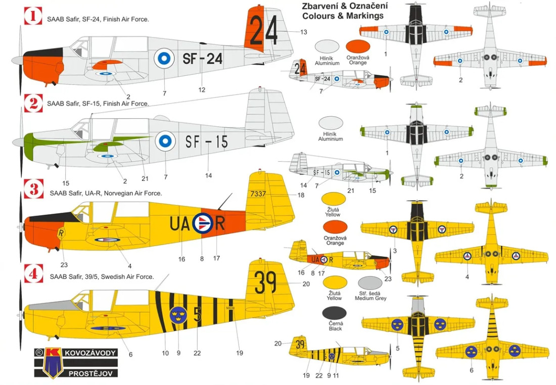 Kovozávody Prostějov KPM0524 - 1:72 SAAB Safir „In Nodric services“
