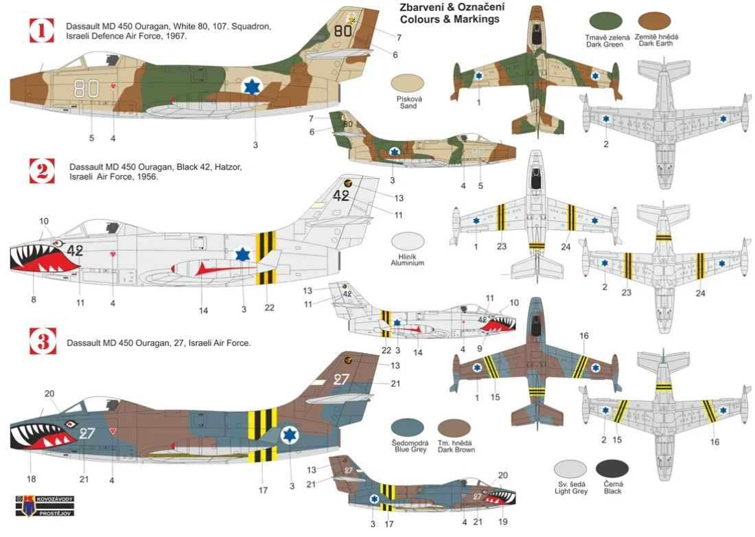 Kovozávody Prostějov KPM0530 - 1:72 Dassault MD.450 Ouragan ″In Israel services″