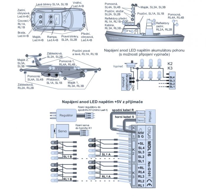 Type W resistant to splashing water, snow, humidity and dust. MDL16 – Universal RC Model LED Lighting Controller: Car, Boat, Plane, BUS, TIR, Tractor, Tank, Dinghy, Sub, Glider.