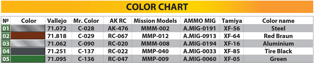 Doporučené barvy GSI Gunze Mr. Color (C):