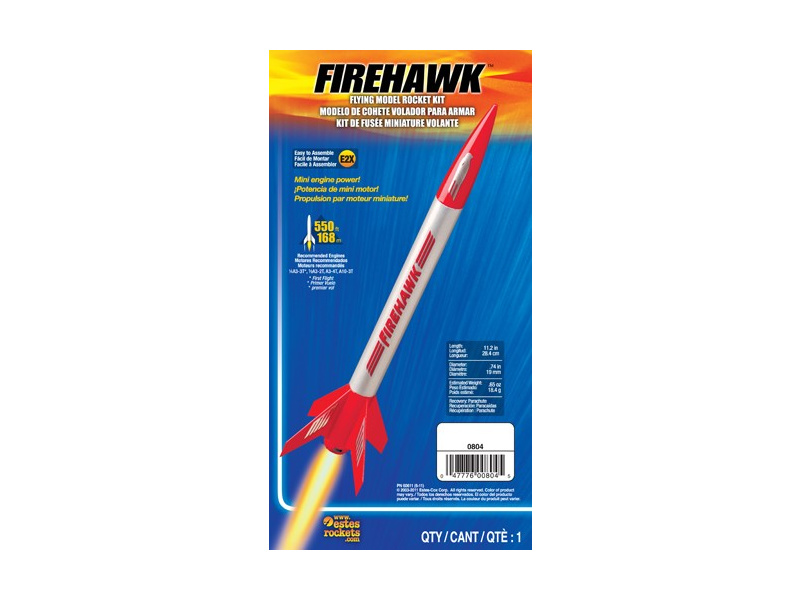 Firehawk is a high performance fast rocket that is built on the proven foundation. Contains painted body tubes and plastic parts.