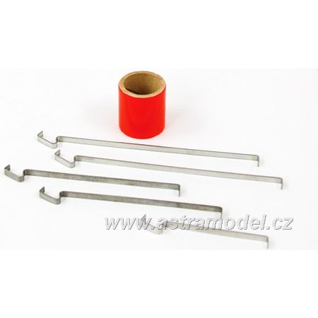 Háčky Estes na přichycení raketových motorů. V balení jsou 2 ks o délce 45 mm, 3 ks o délce 73 mm, 2 ks o délce, 98 mm.